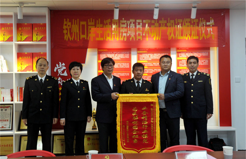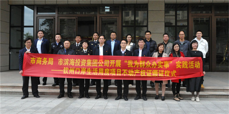2021年11月23日上午,市商務局、市濱海投資集團公司在市濱海投資集團公司12樓黨員活動室聯(lián)合開展“我為群眾辦實事”主題實踐活動,舉行欽州口岸生活用房項目不動產(chǎn)權證頒證儀式。市濱海投資集團公司黨委副書記卜玉聲同志主持會議,市商務局黨組書記、一級調研員王紹平同志出席會議并講話。