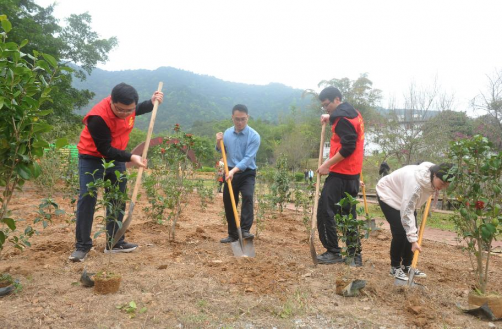 活動(dòng)現(xiàn)場(chǎng),全體人員積極投身于添綠行動(dòng)中,揮鍬鏟土、扶苗填土、提水澆灌,大家分工協(xié)作、相互配合、熱情高漲。經(jīng)過2個(gè)小時(shí)緊張的勞動(dòng),一排排新栽種的桂花、山茶花樹苗亭亭玉立,展現(xiàn)勃勃生機(jī),為初春的景區(qū)大地增添了絲絲活力。