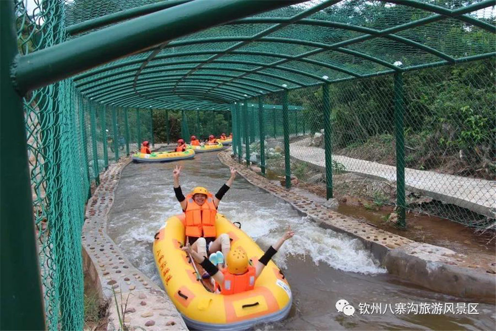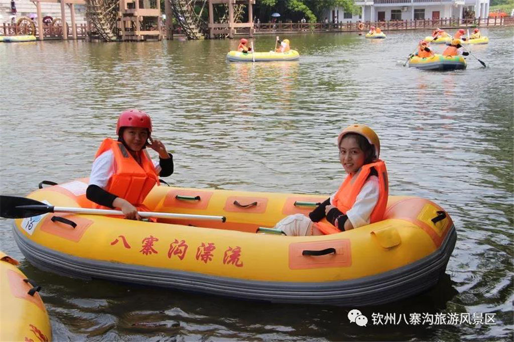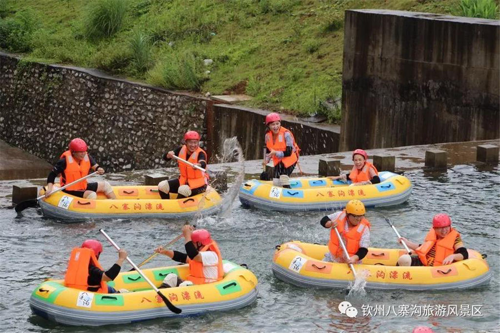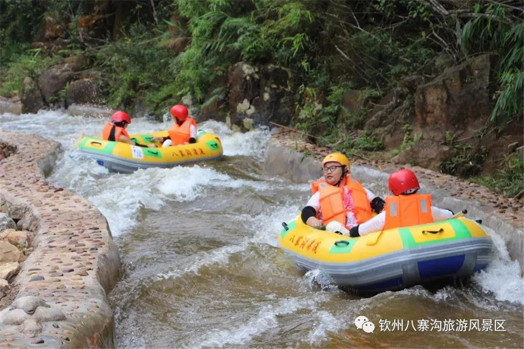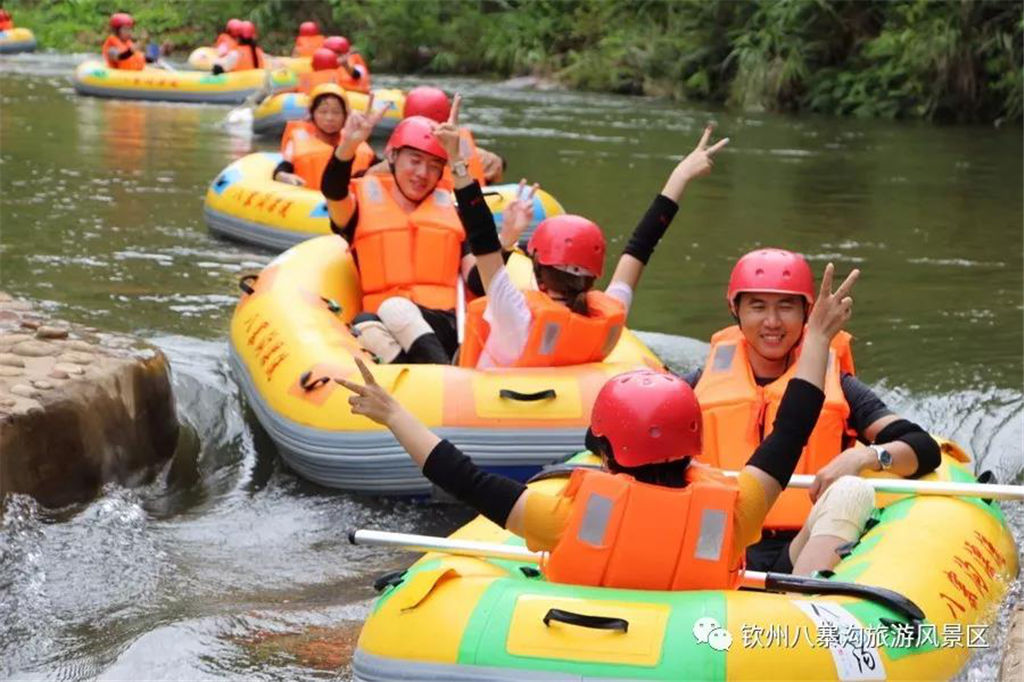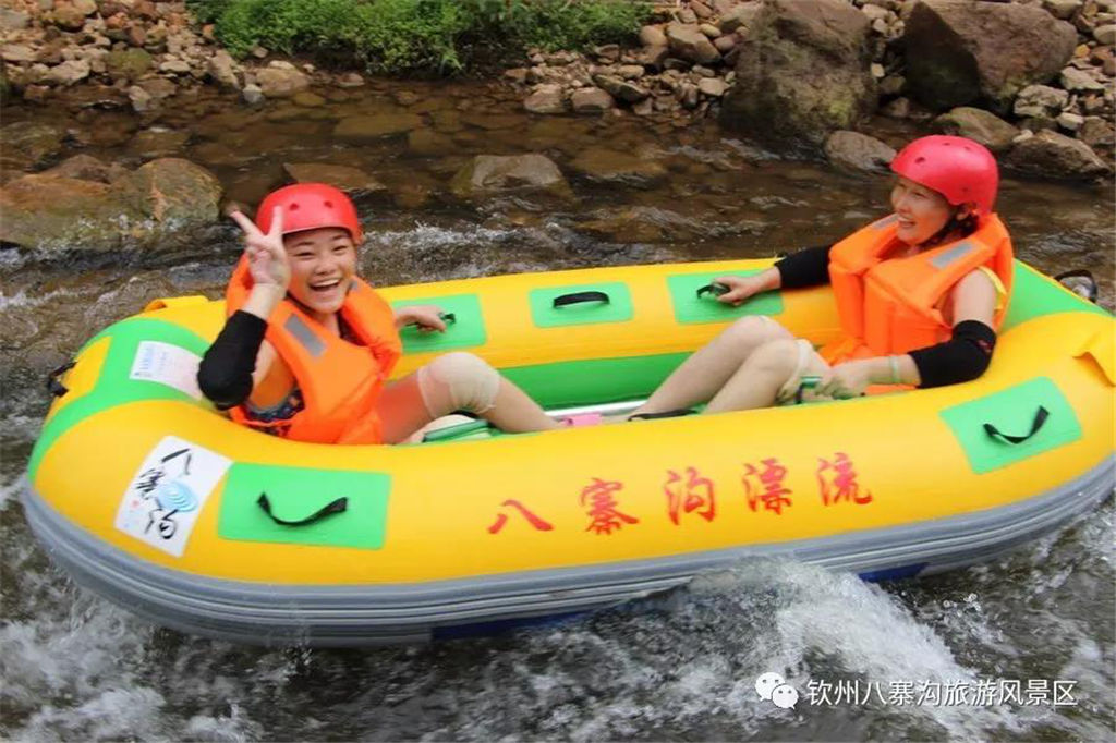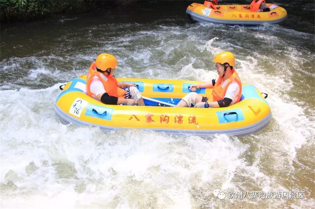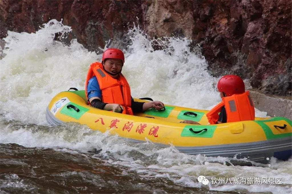 游人乘坐雙人橡皮艇,從清涼的水花中一躍而過(guò),時(shí)而輕盈如燕,時(shí)而奔騰如虎,一路漂蕩、一路歡叫。