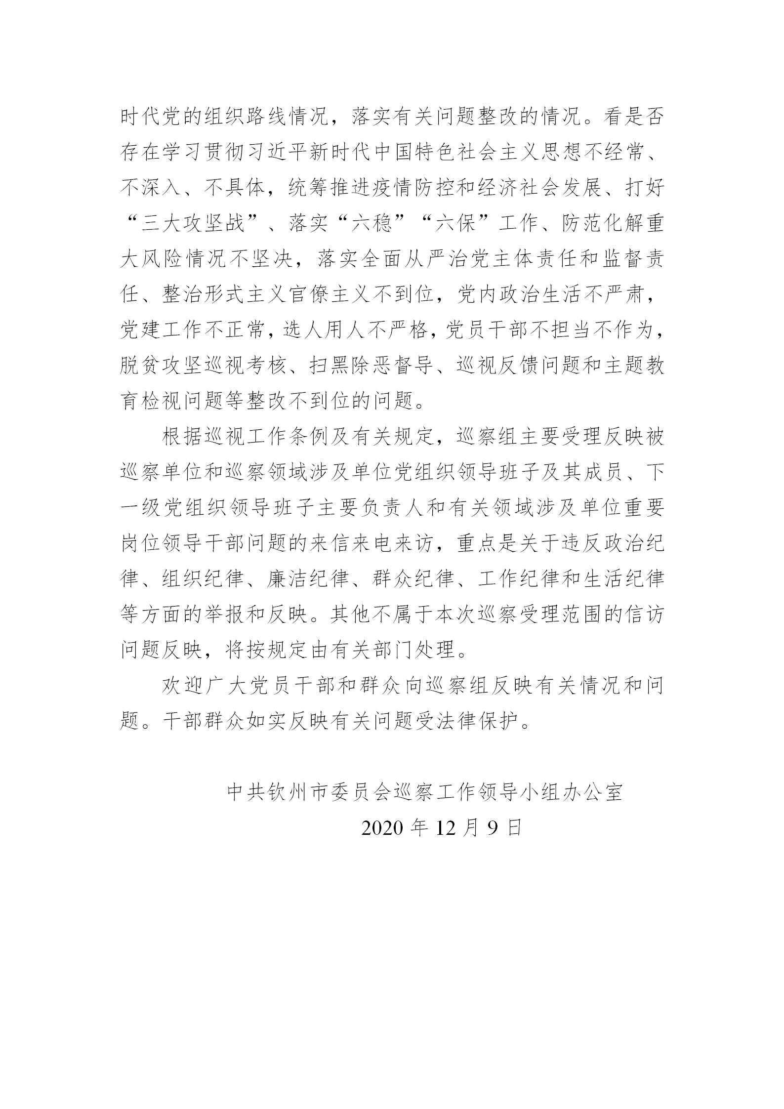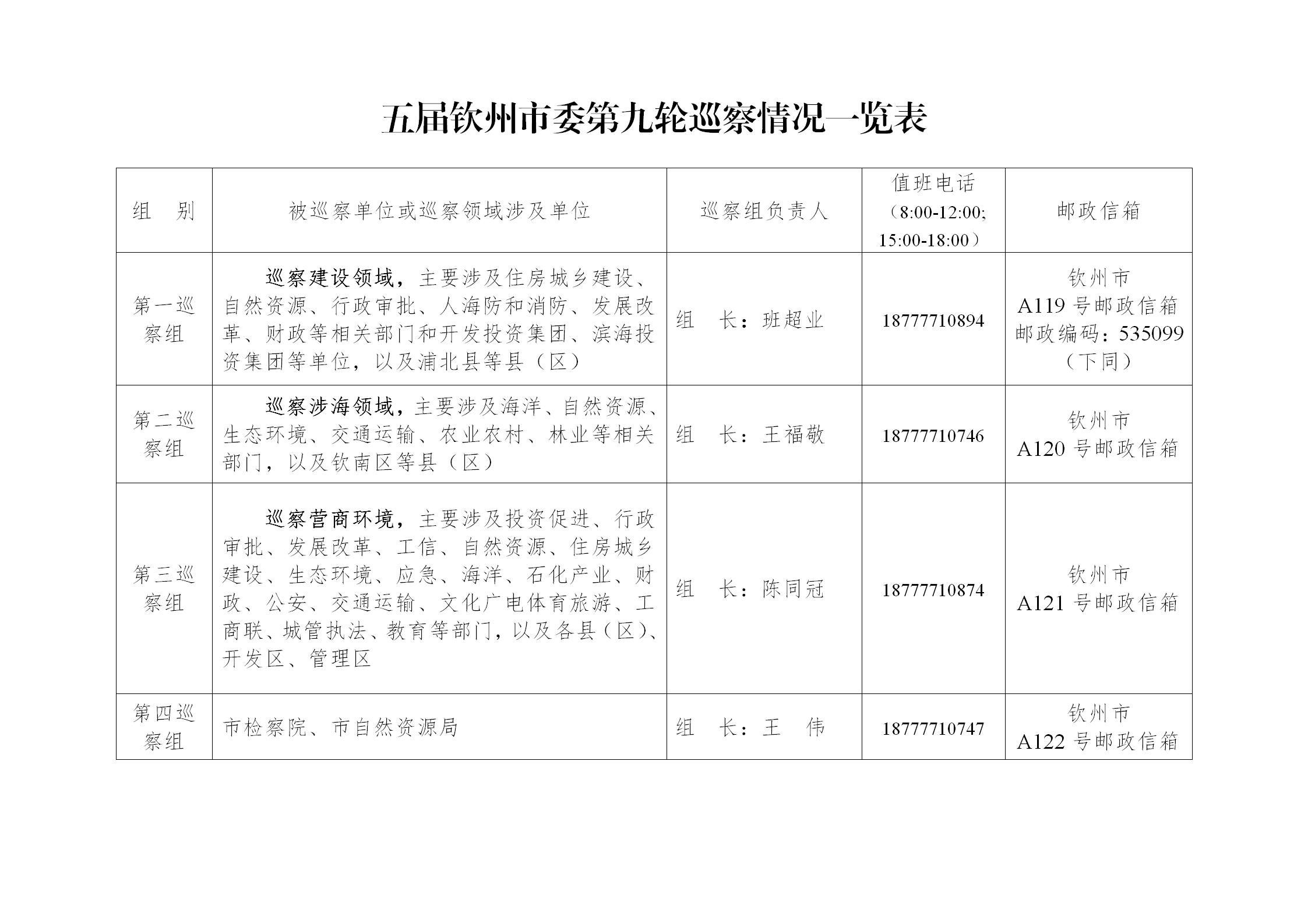 五屆欽州市委第九輪巡察公告