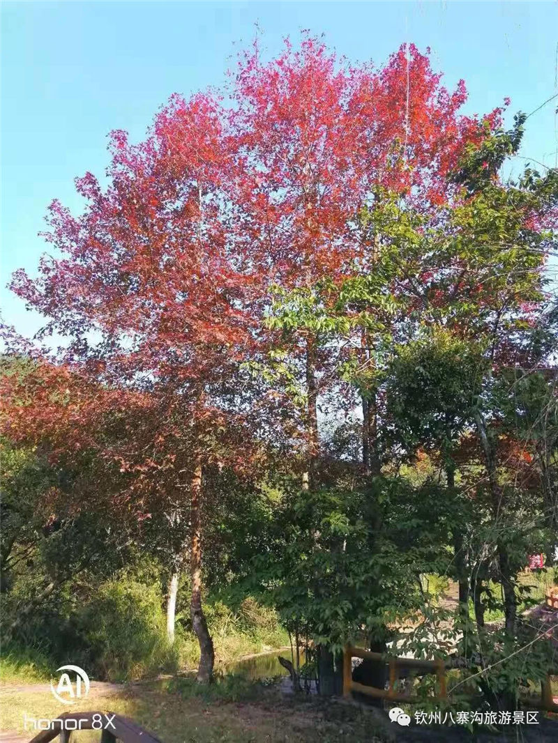 很多人都說,八寨溝好像是沒有冬天的。在北方雪花紛飛之時,八寨溝仍然綠意盎然,仍然溫暖如春。但似乎是預(yù)知了冷空氣的到來,八寨溝的楓樹也悄然披上紅裝,梅園盡頭,萬壽谷公路兩側(cè),俯首間,一樹紅葉,滿徑絳色;仰望中,層林盡染,天然畫卷。梅園盡頭,五孔橋旁,流水潺潺,一潭清水,楓葉輕浮,好一幅天然的臨水丹楓圖。