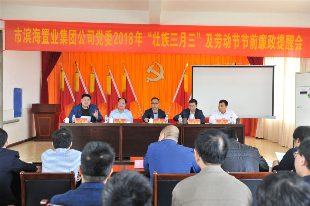 近日,市濱海置業(yè)集團(tuán)公司黨委組織召開2018年“壯族三月三”和“五一”勞動節(jié)節(jié)前廉政提醒會議。公司黨委班子領(lǐng)導(dǎo)、全體中層領(lǐng)導(dǎo)、全體黨員及有關(guān)部室人員參加了會議。