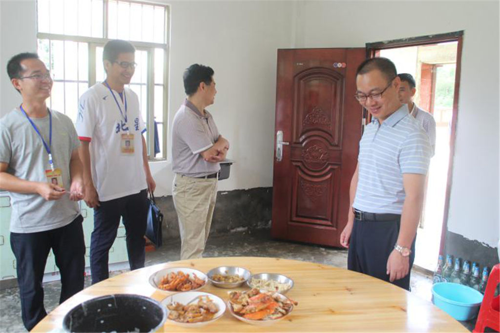 最后,趙文博董事長來到新禾村公共服務(wù)中心看望駐村隊員。由于先前駐村隊員駐村條件艱苦,沒有固定的廚房,每天都要面對“吃飯難”的問題。今年5月份市委組織部下發(fā)《關(guān)于做好扶貧攻堅(鄉(xiāng)村振興)工作隊員駐村安排工作的通知》,要求駐村隊員吃住在村、全脫產(chǎn)工作在村作為一條鐵的紀(jì)律。為此,新禾村的三個幫扶單位積極研究對策并推動落實,集團公司大力予以資金支持用于新禾村公共服務(wù)中心廚房的建設(shè)。歷經(jīng)一個多月的建設(shè),村委廚房已建成并投入使用。趙文博董事長在第一書記的引導(dǎo)下來到廚房參觀,看到廚具、餐具、餐桌、凳子一應(yīng)俱全,駐村隊員們終于解決了吃飯難問題時,趙董事長松了一口氣,他表示廚房的建成,不僅解決了駐村隊員做飯難、吃飯難的問題,同時也為駐村隊員解決了后顧之憂,讓工作隊員能安心駐村,爭取提前完成脫貧攻堅任務(wù)打下堅實的物質(zhì)基礎(chǔ)。