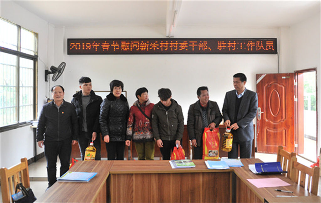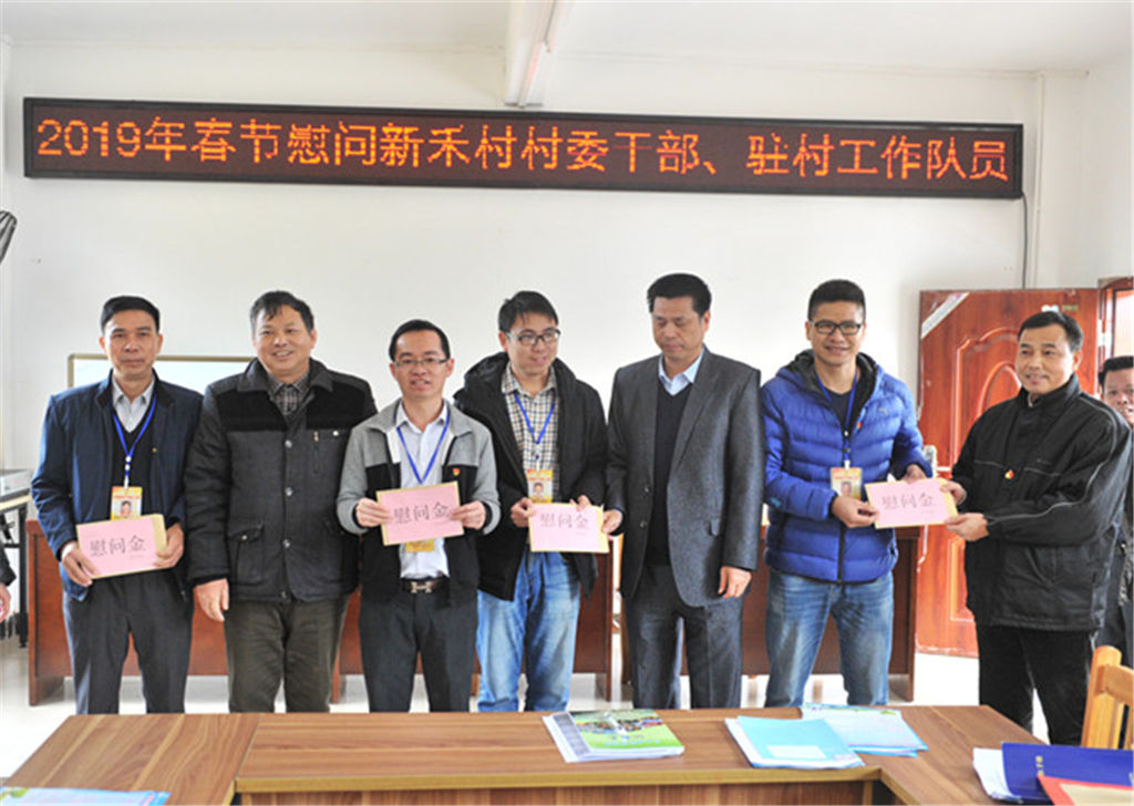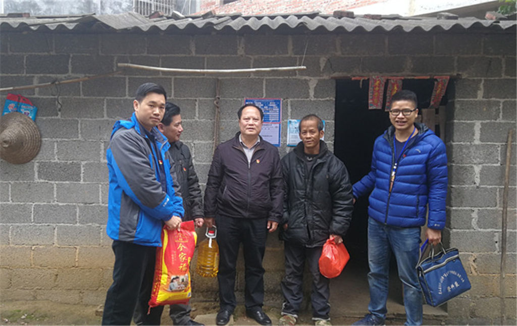 春節(jié)來(lái)臨之際,為讓困難黨員、貧困戶、村干部和駐村工作隊(duì)員渡過(guò)一個(gè)歡樂(lè)祥和的春節(jié),集團(tuán)公司副總經(jīng)理?xiàng)钚聴澛暑I(lǐng)黨員干部冒著嚴(yán)寒,帶著濃濃暖意前往幫扶聯(lián)系點(diǎn)靈山縣伯勞鎮(zhèn)新禾村開(kāi)展春節(jié)慰問(wèn)活動(dòng),送上集團(tuán)公司的關(guān)懷問(wèn)候和新春祝福。
