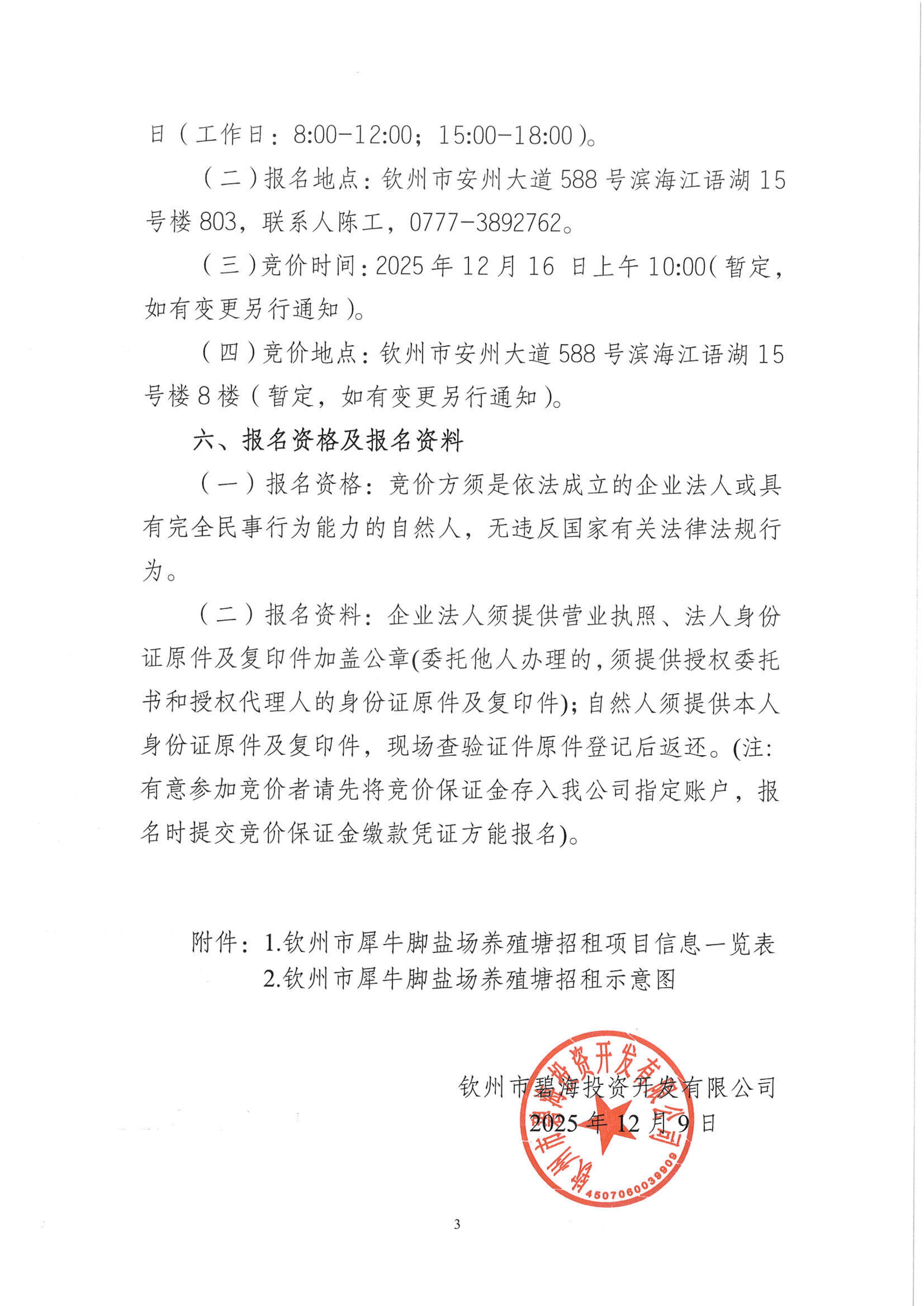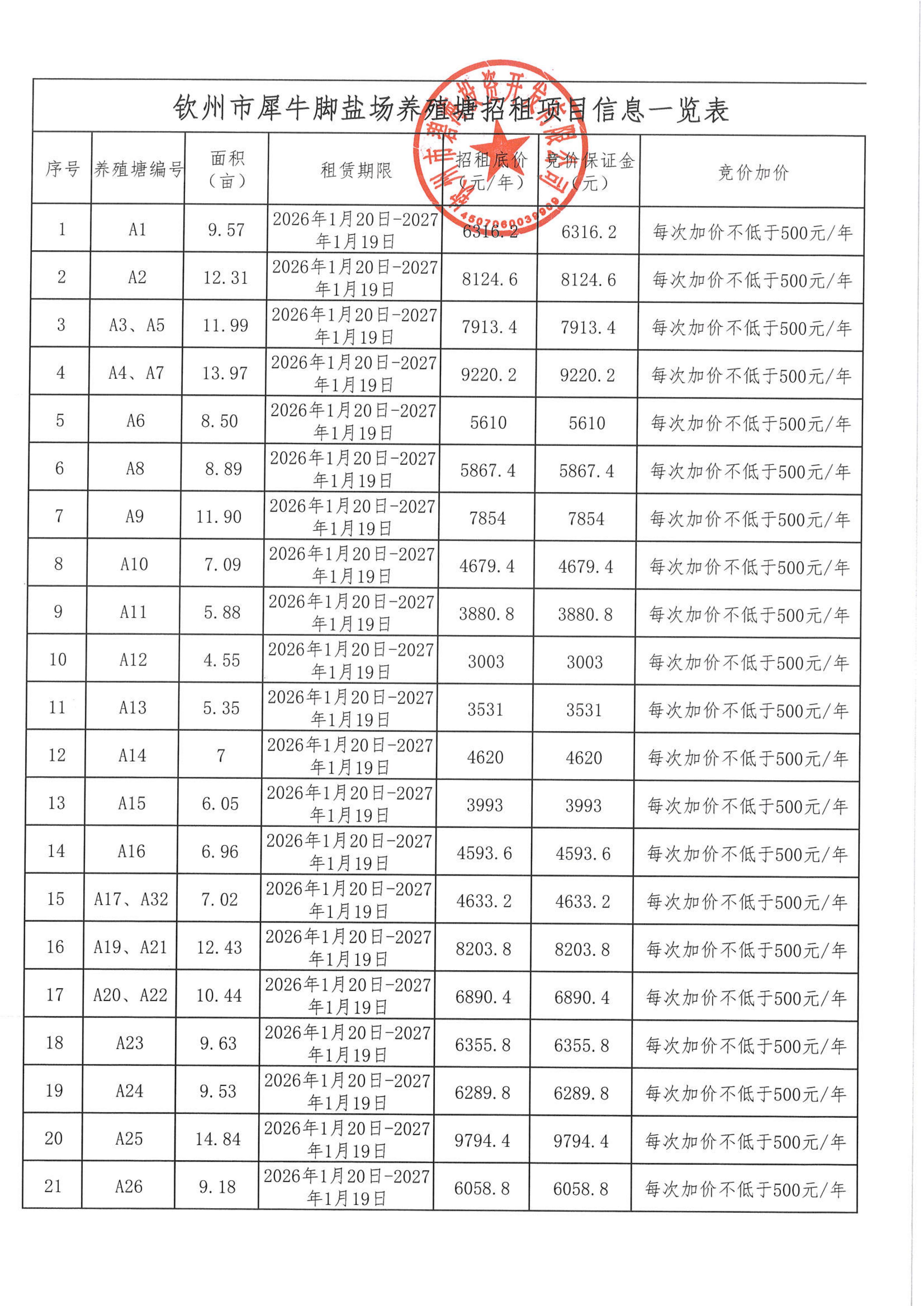 關(guān)于犀牛腳鹽場養(yǎng)殖塘公開招租的公告