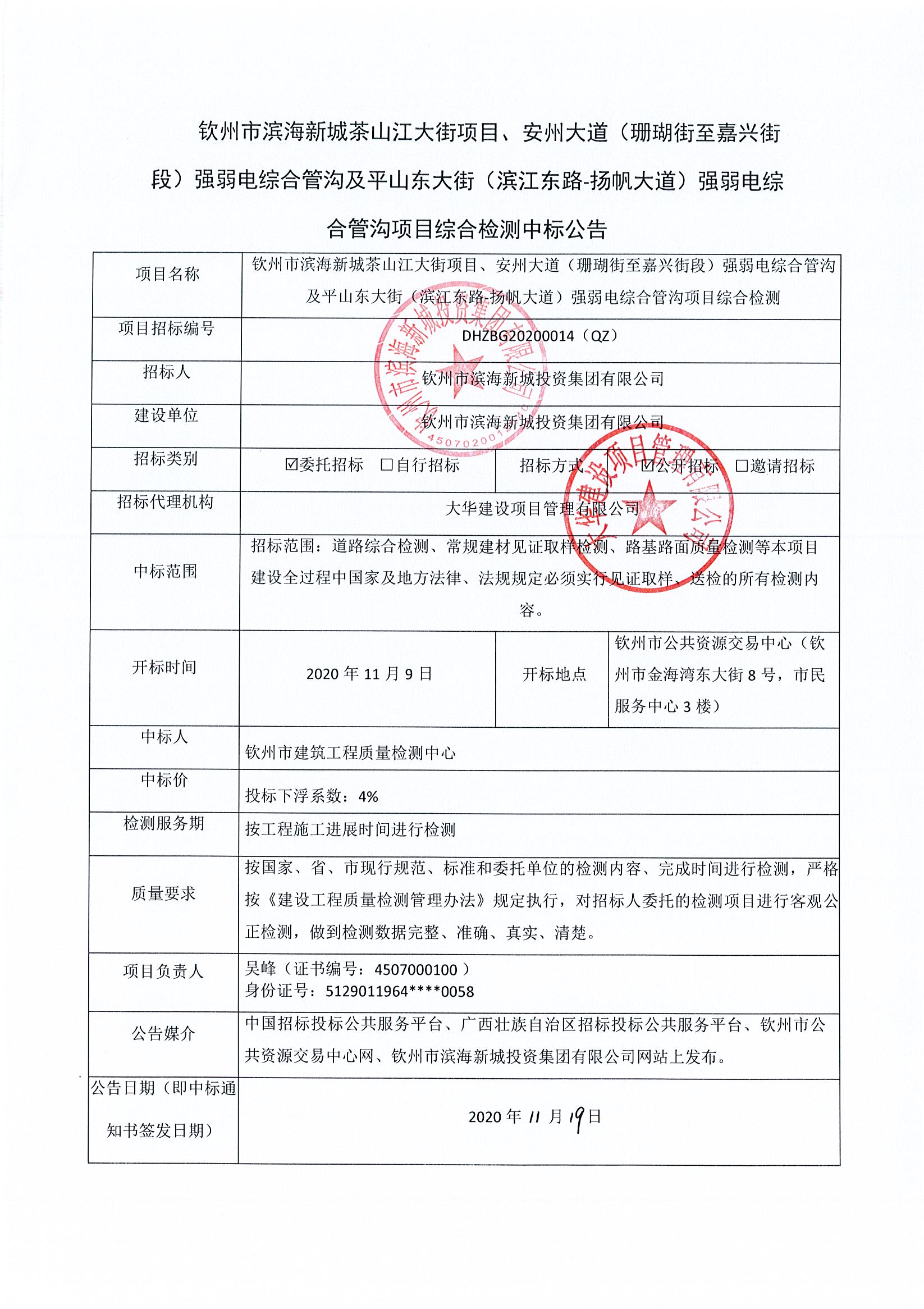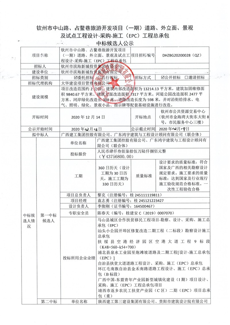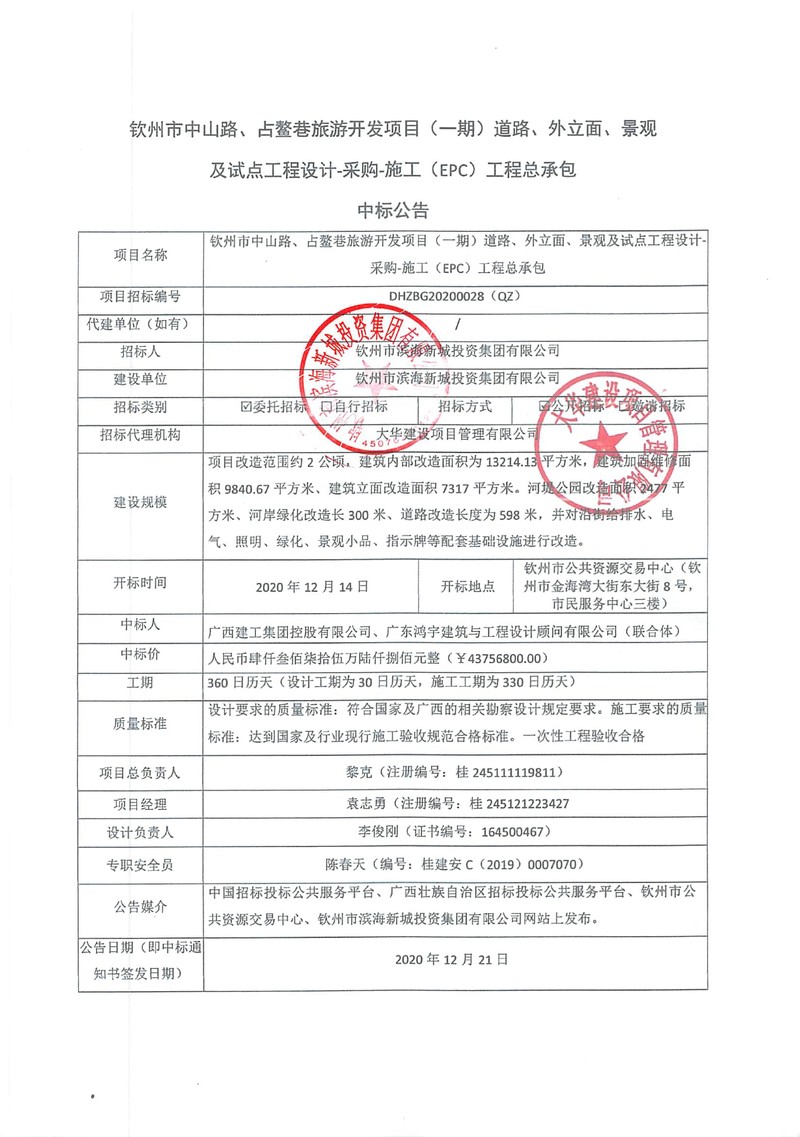 項(xiàng)目名稱 欽州市中山路、占鰲巷旅游開(kāi)發(fā)項(xiàng)目(一期)設(shè)計(jì) 項(xiàng)目招標(biāo)編號(hào) DHZBG20200008(QZ) 招標(biāo)人 欽州市濱海新城投資集團(tuán)有限公司 建設(shè)單位 欽州市濱海新城投資集團(tuán)有限公司 招標(biāo)類(lèi)別 ...