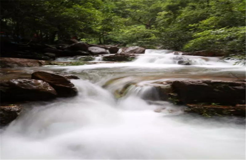 新月潭瀑布,猶如刀削一樣的從絕壁上沖天而下,周邊是成片石板,形如一彎新月,每當(dāng)雨后清風(fēng)佛過潭面,水波沿著弧形月亮圈圈蕩漾開來。