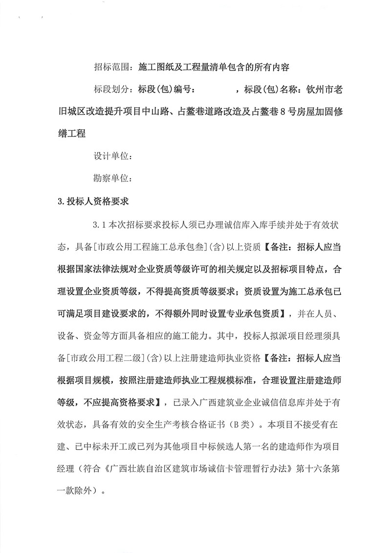 招標公告-欽州市老舊城區(qū)改造提升項目中山路沿街公房修繕工程(第一批)