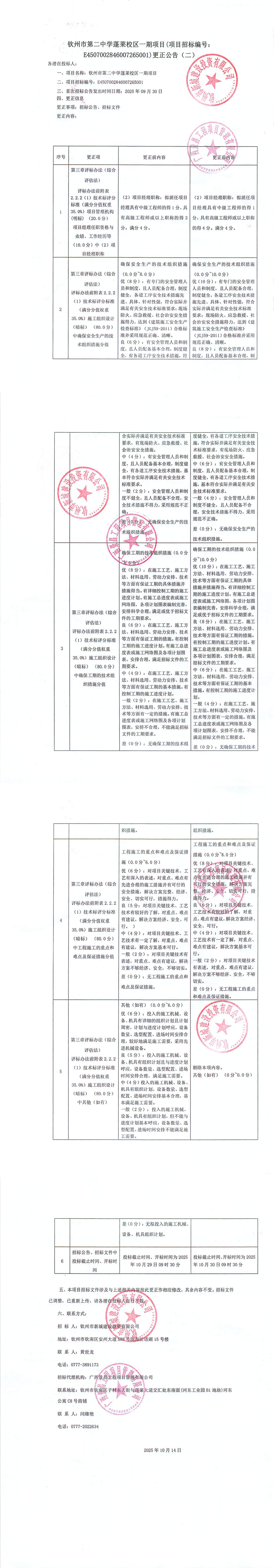 欽州市第二中學(xué)蓬萊校區(qū)一期項(xiàng)目(項(xiàng)目招標(biāo)編號:E4507002846007265001)更正公告(二)