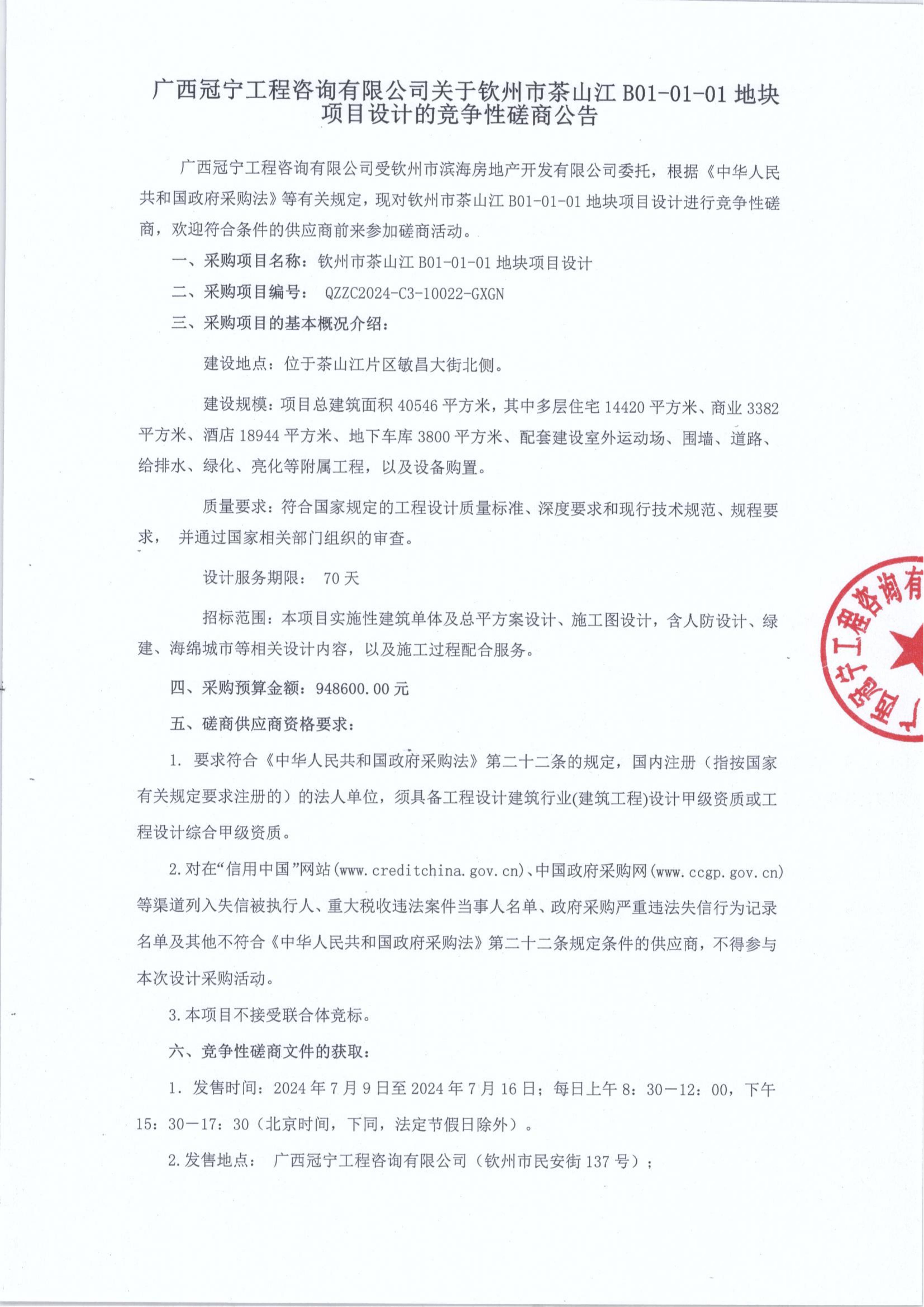 1.招標(biāo)條件 本招標(biāo)項(xiàng)目欽州北部灣大學(xué)大門商業(yè)街地塊項(xiàng)目設(shè)計(jì)已由廣西投資項(xiàng)目在線審批監(jiān)管平臺(tái)以備案形式批準(zhǔn)建設(shè),招標(biāo)人為欽州市濱海房地產(chǎn)開發(fā)有限公司,建設(shè)資金來自國有資金,項(xiàng)目出資比例為: ...